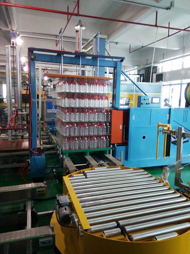 開放式弓架活動的穿帶能將棧板與捆包物牢固地捆包在一起便于移動及運(yùn)輸,堆滿產(chǎn)品的棧板通過輸送滾筒線可實(shí)現(xiàn)無人化捆包生產(chǎn)線。