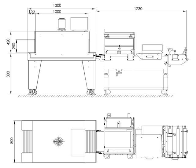本套設(shè)備由熱收縮機(jī)和封切機(jī)兩個(gè)部分組成。采用”L”型人工封切,然后自動(dòng)傳輸進(jìn)收縮機(jī)室,完成收縮過程;
