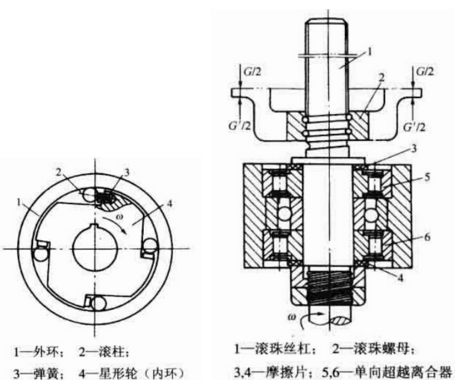 由于高傳動效率,滾珠絲杠副不能自鎖。如果在垂直方向傳動過程中零部件類型不平衡,則必須在傳動停止或電動機(jī)斷電時防止這種情況發(fā)生,否則會因零部件的重量而導(dǎo)致反向旋轉(zhuǎn)。為防止反向旋轉(zhuǎn),可以使用超越離合器,不能反向的驅(qū)動馬達(dá)或不能反向的傳動裝置(例如自鎖蝸桿驅(qū)動器),電磁或液壓制動器。目前,國內(nèi)的加工廠已經(jīng)生產(chǎn)了各種適合防止滾珠絲杠副反向旋轉(zhuǎn)的超越離合器。