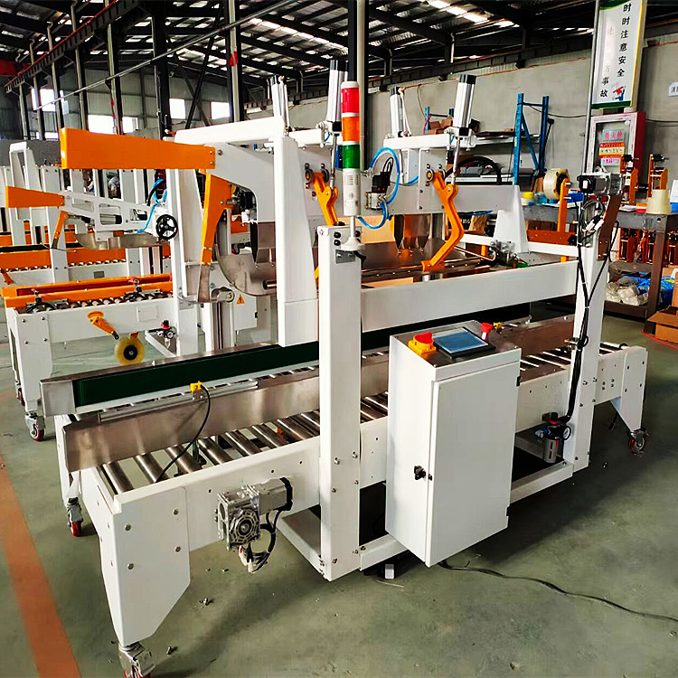 3、熱熔膠封箱功能。很多用戶會(huì)選用熱熔膠的方式封箱來取代膠帶封箱,或者二者兼而有之,這時(shí),封箱機(jī)是需要定制的,機(jī)身會(huì)加長(zhǎng),同時(shí)還要加裝一些配合熱熔膠機(jī)使用的其他附件。