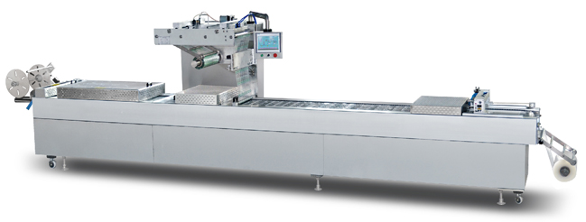 包裝物品由一頭進,另一頭出,便于組成流水生產(chǎn)線。包裝件的外形美觀、貨架陳列效果好。由于有兩次抽真空,且在兩次抽真空之間,設有無氧氣體沖洗裝置,可進一步提高除氧效果,延長保存期,提高包裝質(zhì)量。